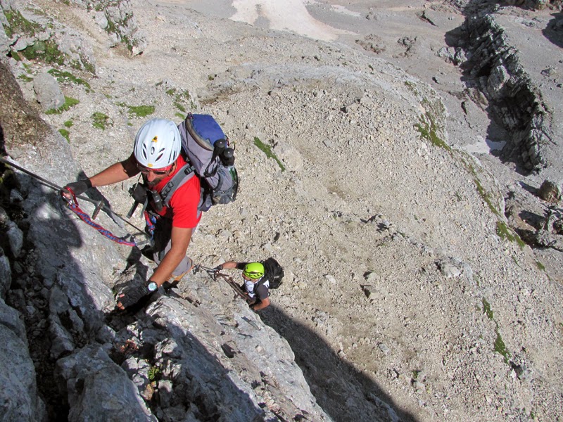 ritrovare la ferrata con funi e scale metalliche) – Ferrata della Furcia Rossa – Bivio q.2745 (La ferrata è
